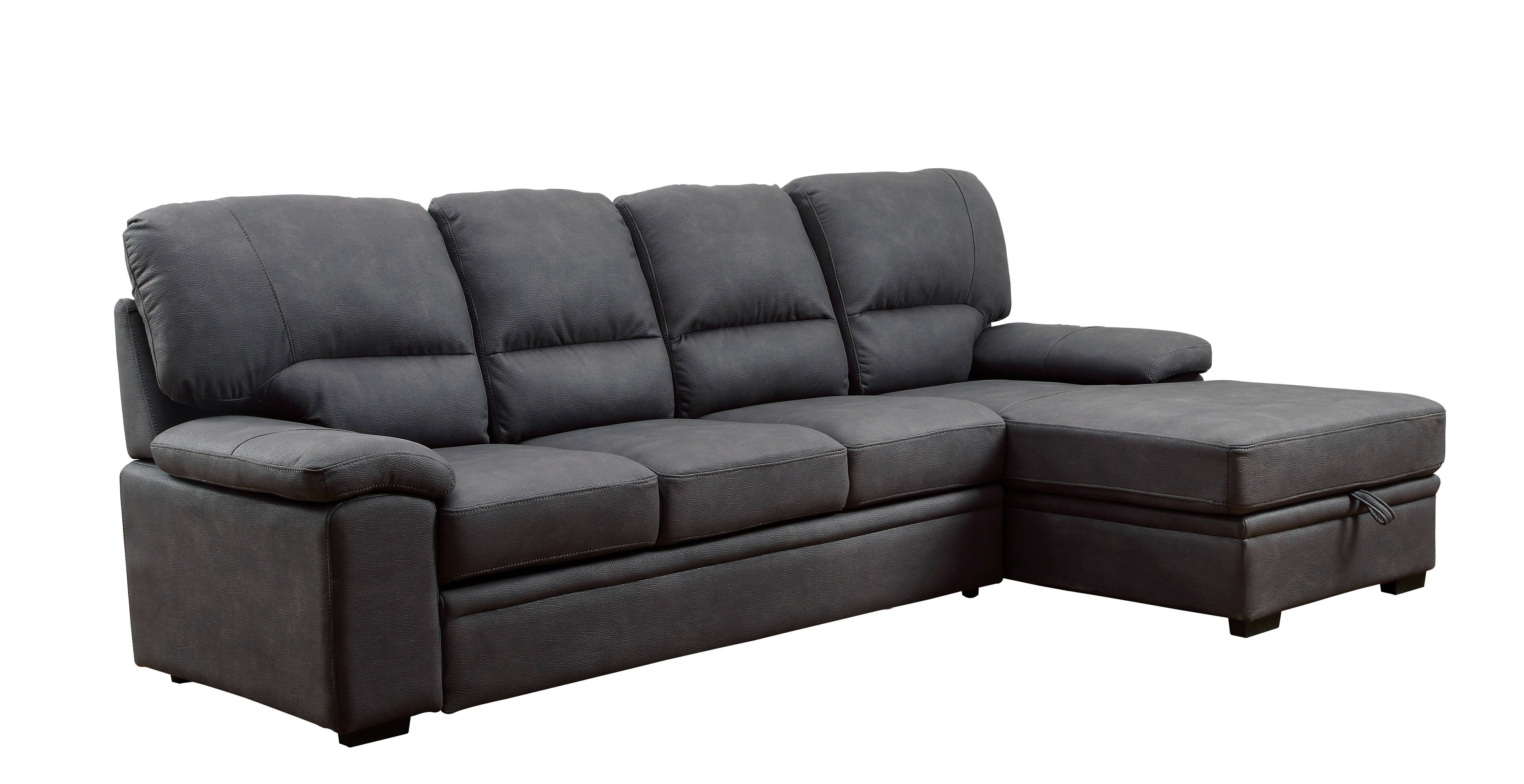 Contemporary style, Sectional Tufted back cushions Faux-nubuck fabric Pull out under-seat base Storage room underneath Graphite