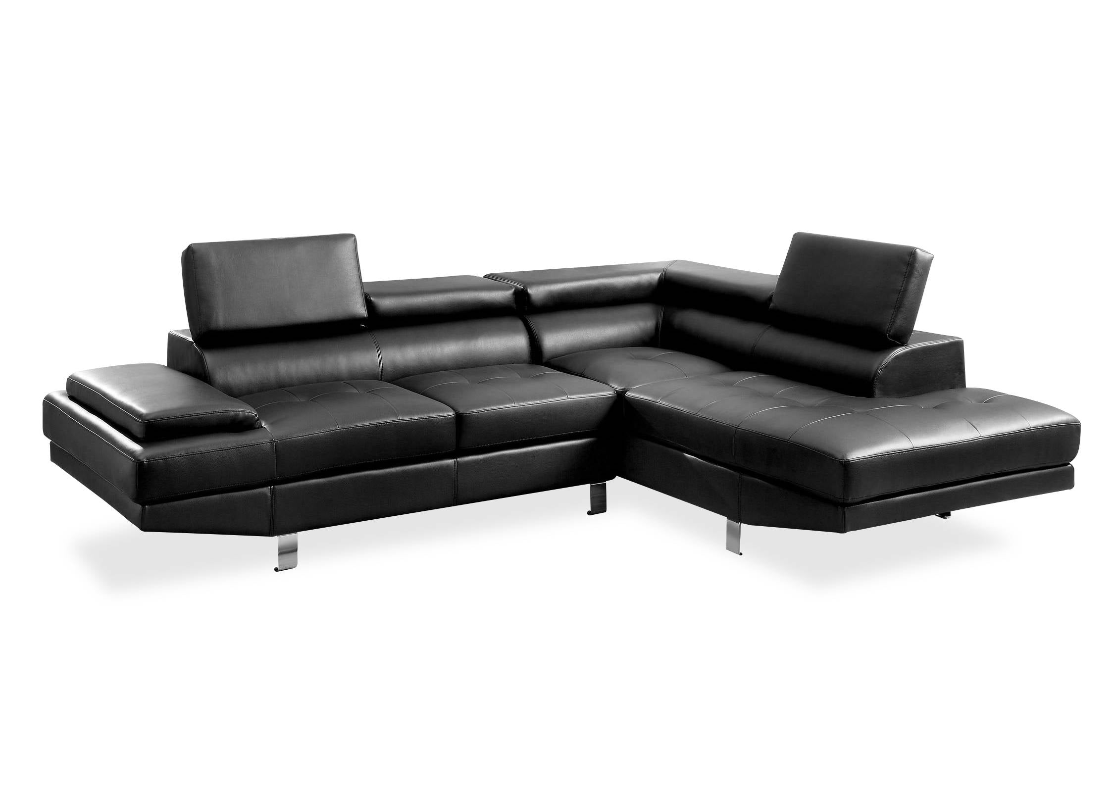 Contemporary style, Sectional Fully upholstered in bonded leather match for smooth and sleek touch Pneumatic gas lift headrest offers comfortable support and smooth lowering motions Plushy padded with comfortable foam and no-sag springs to ensure ultimate comfort Sturdily supported by an internal hardwood frame and durable chrome legs Black