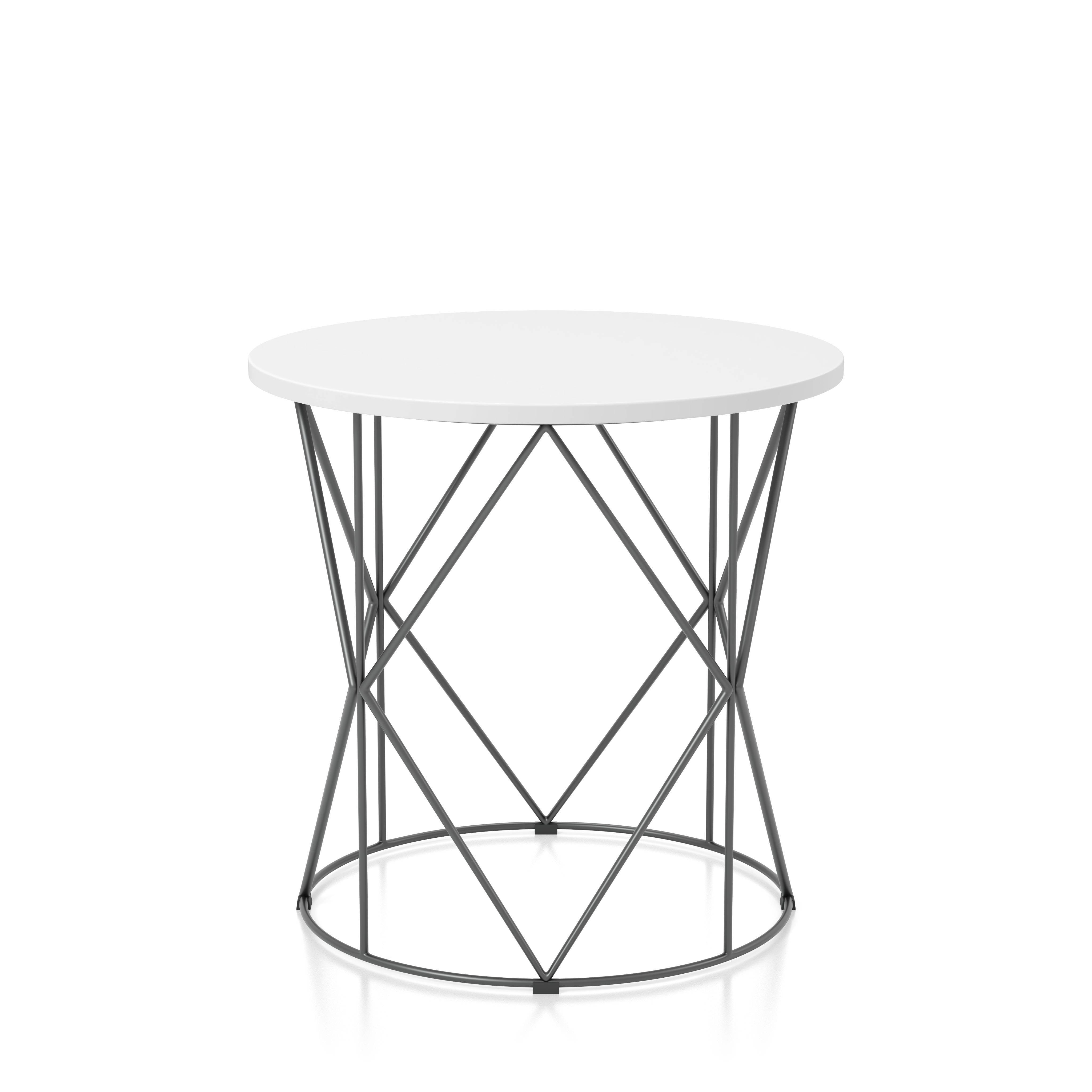 End Table, Modern style Metal base with a geometric diamond design Oval footprint adds interest Perfect for a living room, den, or entryway White, Black