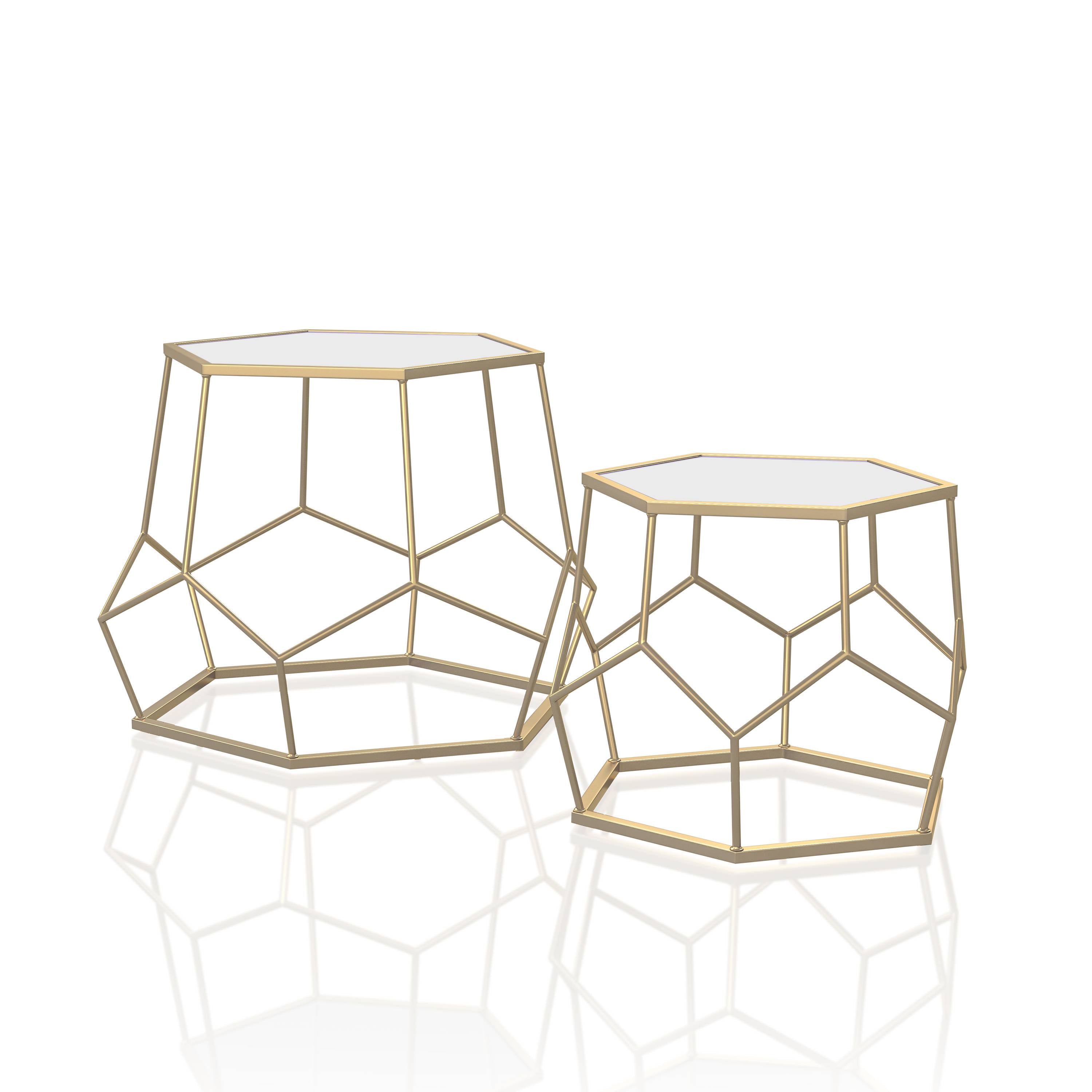 x2-Piece Nesting Tables, Modern style Modern two-tone design Sturdy full metal framework 5mm mirror top Stylish geometric design Gold
