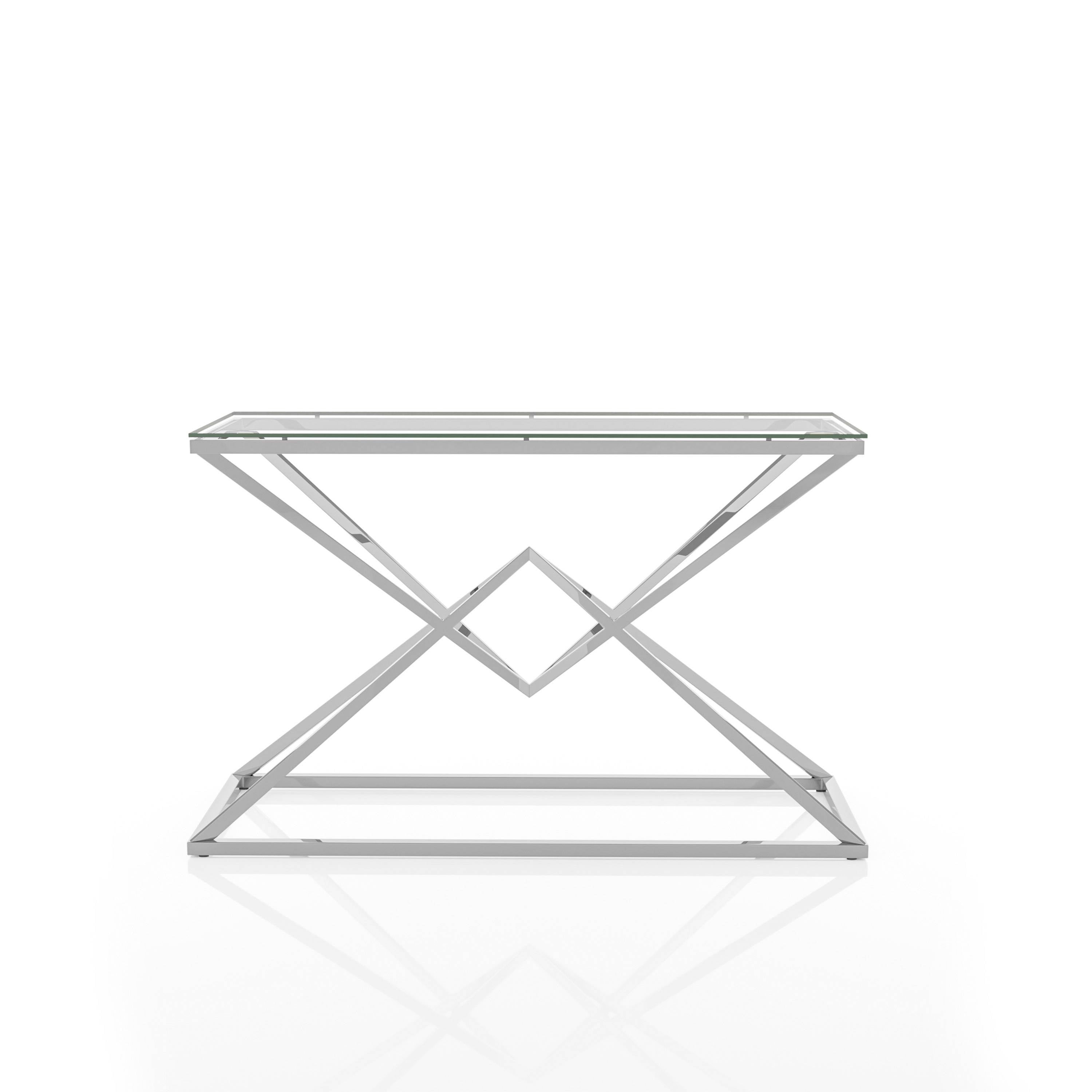 xConsole Table, Modern style Sturdy tempered glass tabletop Durable steel base Elegantly designed for the modern home Bold sculptural base Chrome Plating