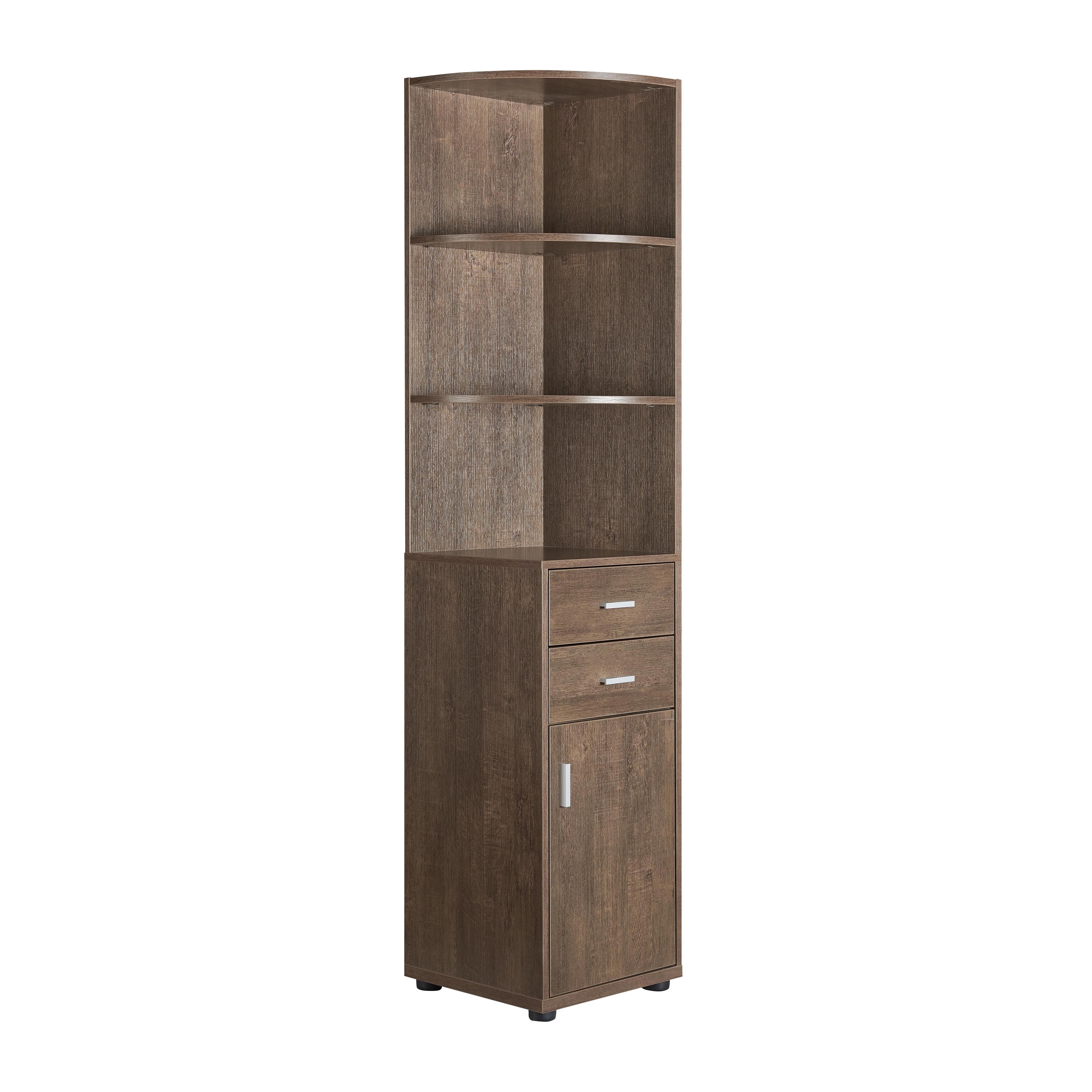 Corner Bookcase, Modern style Crafted to fit into a corner Spacious cabinet Compact design Perfect space saving design Walnut Oak