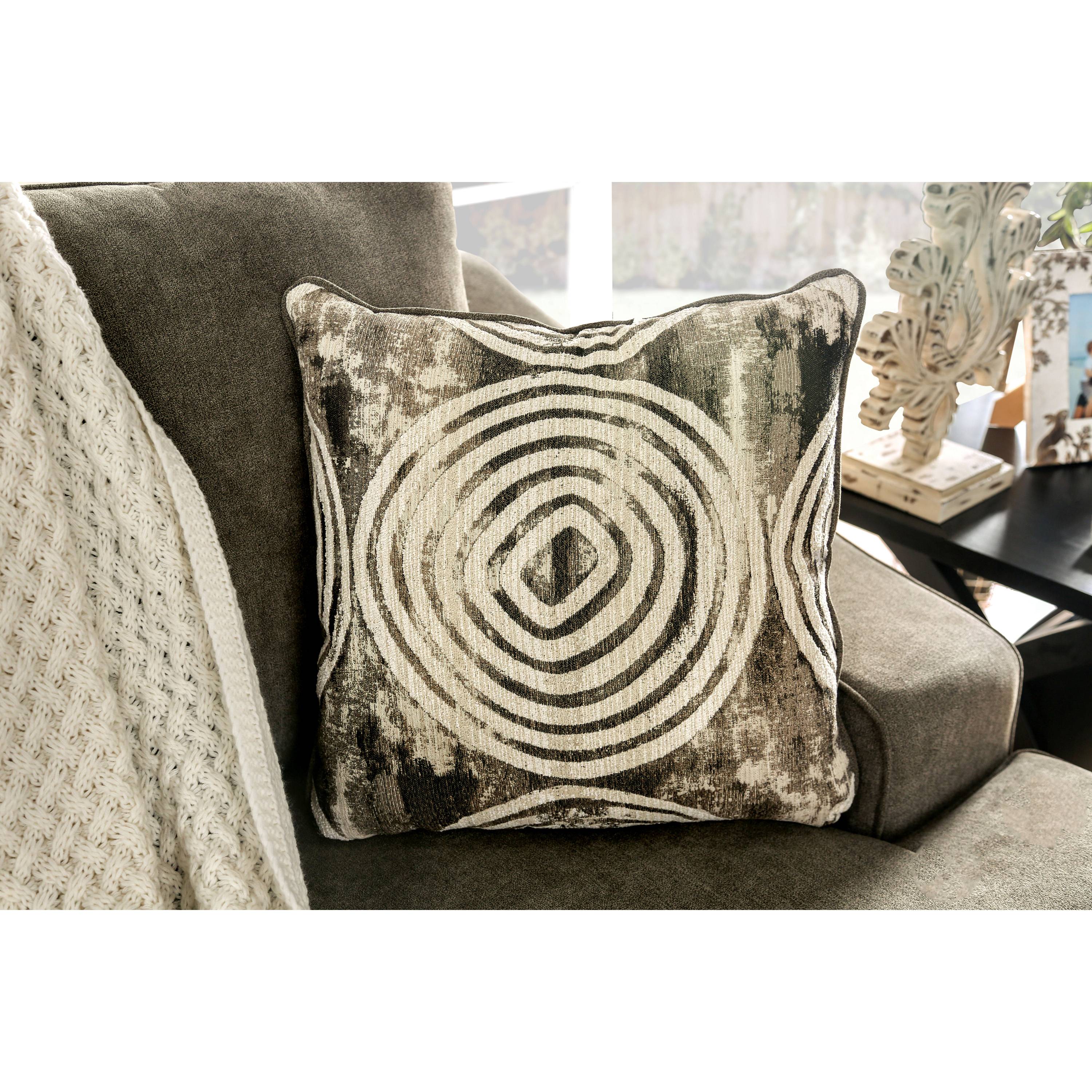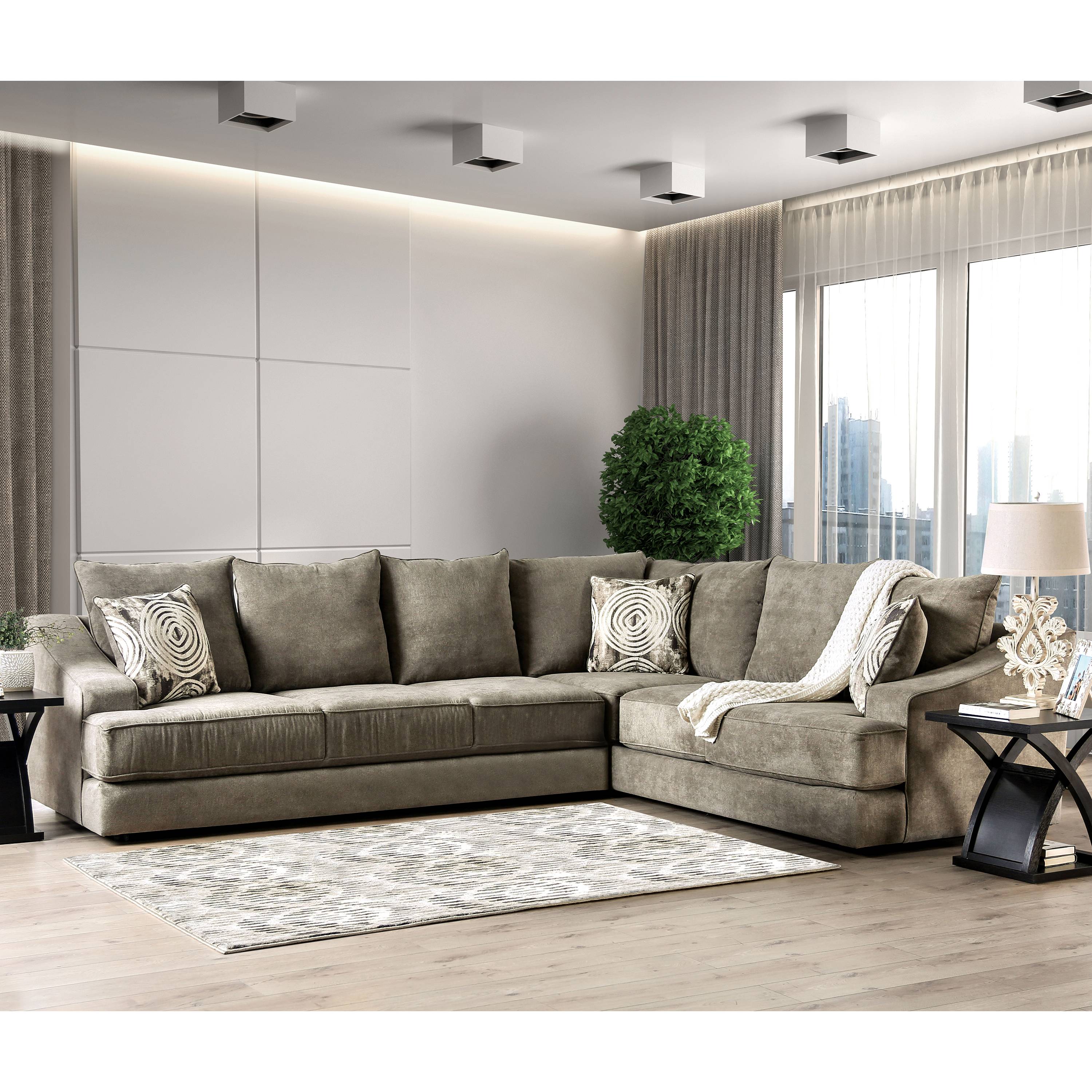 Contemporary style, Sectional Expansive seating in plush taupe tight weave chenille The upholstery features welted trim and sloped track arms Patterned accent pillows included Taupe, Gray